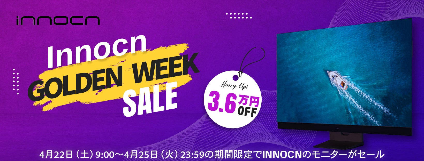 Innocn(イノクン)はハイエンド・業務用モニターを開発・製造する中国・深セン発のディスプレイメーカーです。鮮やかな映像表現と高速な応答速度を実現した製品を多く展開し、ディスプレイメーカーとして業界を常にリードしてきました。Innocnでは48インチの4K有機ELディスプレイ「Innocn 48Q1V」や、27インチ144Hz駆動の「Innocn 27G1R」、24.5インチの165Hz駆動「Innocn 25G1G」が最大36,000円オフになる「Innocn ゴールデンウィークセール」を4月22日から4月25日までの4日間限定で開催いたします。