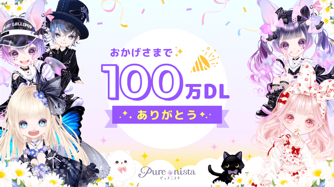 この度100万DLを突破した『ピュアニスタ』は、服や髪型などを組み合わせる一般的なきせかえ機能に加え、性別や肌色を選んだり、目線と頭の傾きを工夫することで、お客様の感性を表現できるきせかえアプリです。