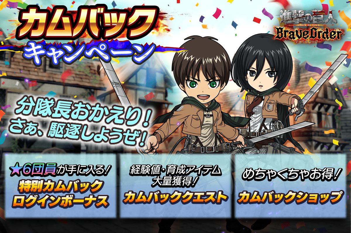 限定特典3:★6+10の【座標の力】エレン・イェーガーが絶対選べる配属書等、復帰プレイヤー限定ショップが登場!