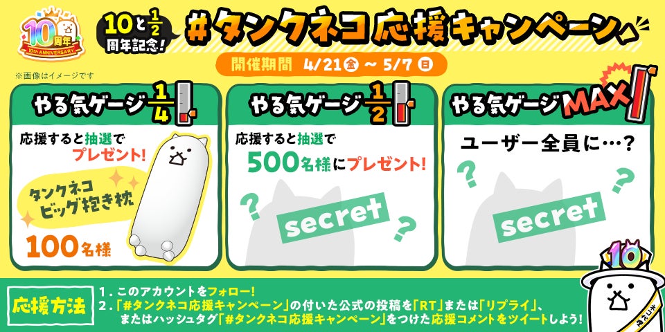 プレゼントはタンクネコの「やる気ゲージ」がそれぞれの段階に達成するごとに発表予定です。