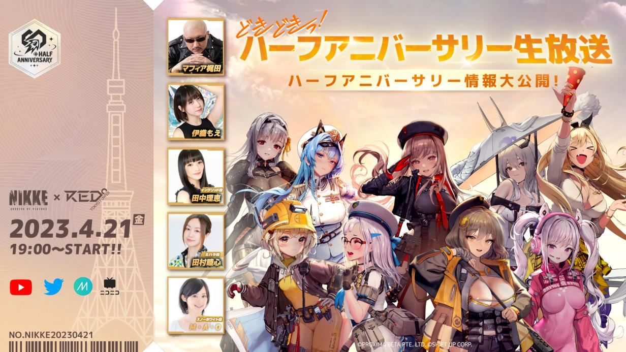 4月21日(金)に開催されたハーフアニバーサリー記念生放送「どきどきっハーフアニバーサリー生放送!」では、豪華ゲスト陣が登場し、ハーフアニバーサリーアップデートの最新情報やNIKKEの今後の展開、生放送限定のコンテンツなどたくさん披露されました。