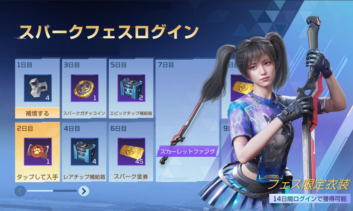 内容:イベント期間中、サバイバー(プレイヤー)はログインすると報酬を受け取れます。上級ペット引換券や、コネクタ部品などを受け取ることができ、ログイン14日目には、宇宙とペットをモチーフにしたフェス限定衣装が獲得できます。
