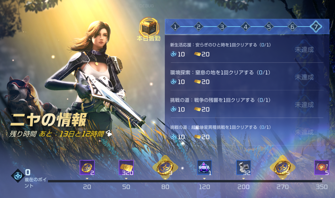 内容:予め決められた、ゲーム内の各コンテンツをクリアすると専用ポイントが溜まり、ポイントが一定数に達するごとに豪華なアイテムが獲得できます。