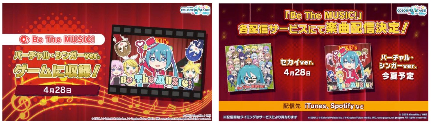 「Be The MUSIC!」(作詞・作曲:キノシタ)のバーチャル・シンガーver.とオリジナル2DMVを2023年4月28日(金)に追加予定です。