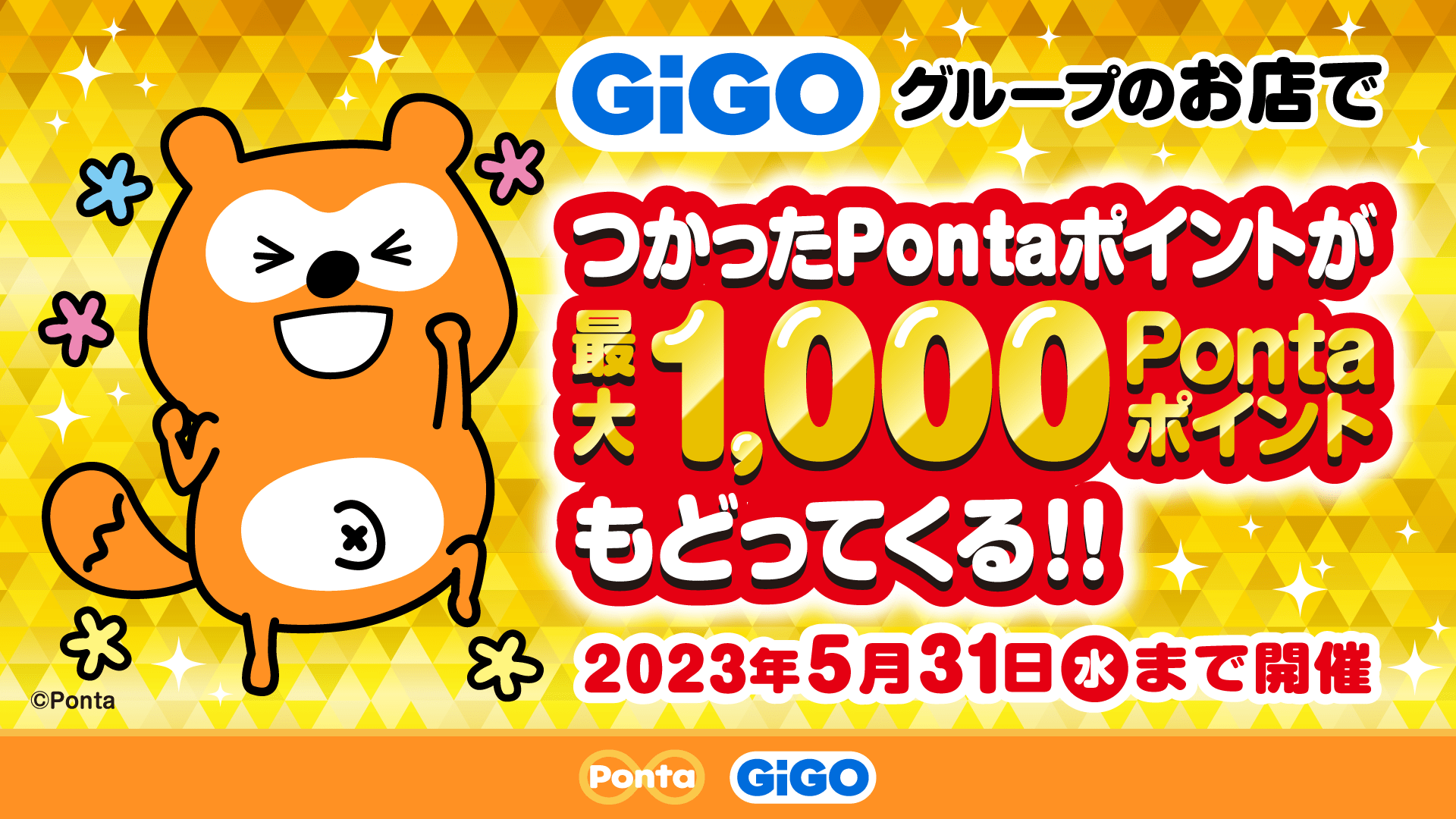 GiGOグループのお店で最高1,000Pontaポイントもどってくる!『Pontaゴールデン還元祭』