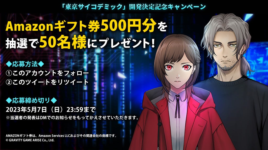 公式Twitter(@tyo_psychodemic)をフォロー&対象ツイートをリツイートいただいた方の中から、Amazonギフト券500円分を抽選で50名様にプレゼントします。
