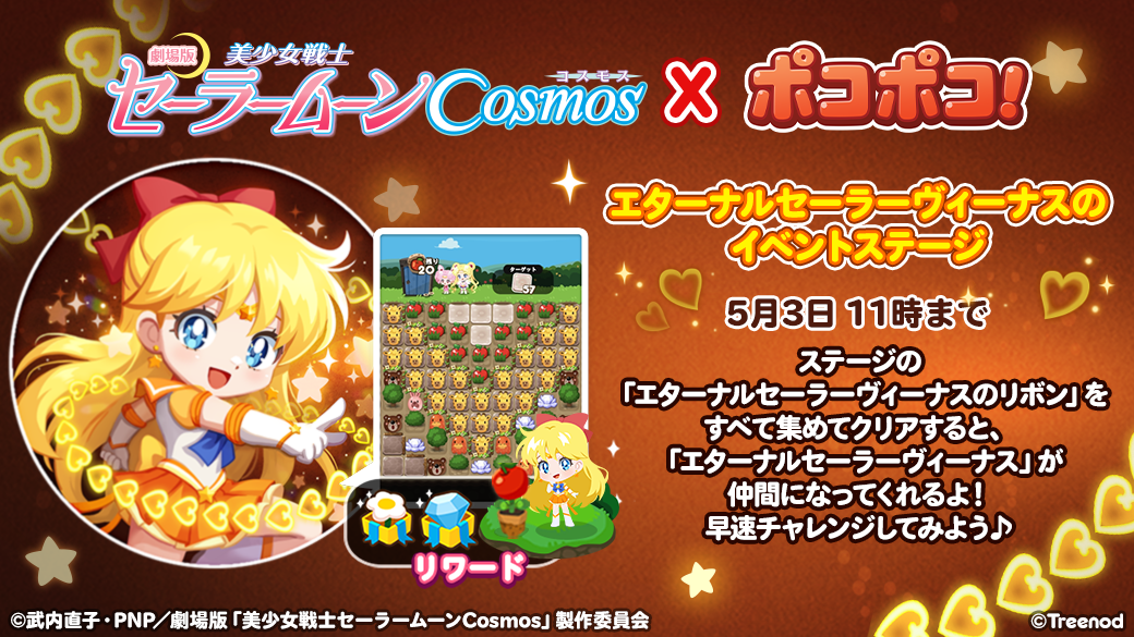 LINE株式会社は、当社が展開する3マッチパズルゲーム「LINE ポコポコ」(iPhone・Android対応/無料)と、劇場版「美少女戦士セーラームーンCosmos」とのコラボレーションイベントを開催します。
