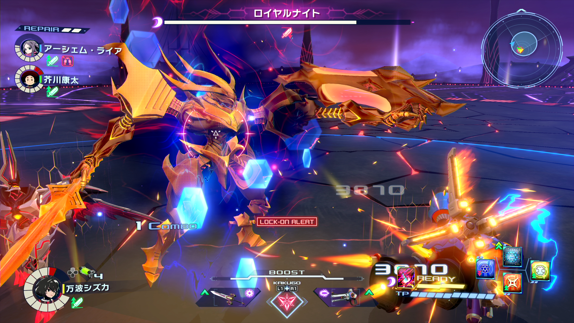 新たに追加される超弩級ミッション「高貴なる領域」に、難易度「ギガトン」が実装されます。難易度「ギガトン」では、一つ下の難易度「メガトン」とは比較にならないほどの強力なエネミーが出現します。そのため、他のミッションとは異なり、一定のダメージを与えるごとに報酬を獲得することができます。見事ミッションをクリアできた際には初回クリア報酬として、専用カラーの「ダイナモギア」を入手することができます。一筋縄ではいかない最高難度のミッションに、装備を整え仲間とともに挑戦してみてください。