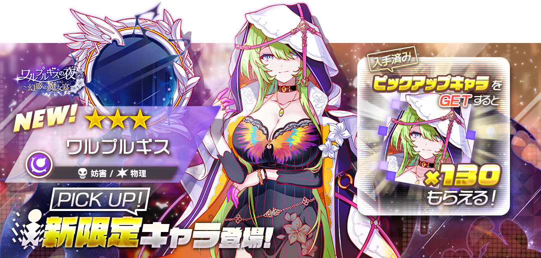 ■「新限定キャラ登場!ピックアップガチャ – ワルプルギス」開催!