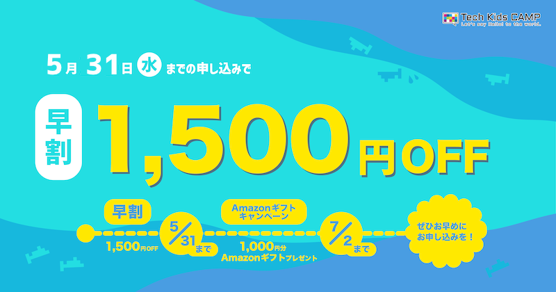 現在、5月31日(水)までのお申込みで1,500円の割引を行う早期申込みキャンペーンや、1,000円相当のAmazonギフト券がもらえるお友達紹介特典といったお得なキャンペーンも実施しています。