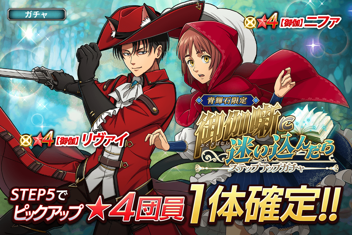・新登場の【御伽】リヴァイ、【御伽】ニファがピックアップされたガチャ。
