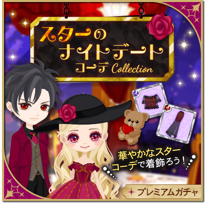 ガイの本編ストーリー第2章の配信を記念して、新作ガチャ「スターのナイトデートコーデCollection」を配信しております。ガイにぴったりの華やかなスターコーデで着飾ってお楽しみください♪