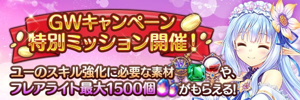 また、最大3000個のフレアライトがもらえるログインボーナスなどを実施しております『ゴールデンウィークキャンペーン』や、ユー加入イベント『黄金の花、祝福の芳香 深淵の園に光差すとき』を合わせて開催しておりますことをお知らせいたします。
