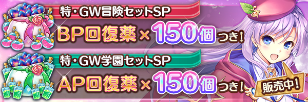 フレアライトとBP回復薬がセットになった、2種類の『特・GW冒険セット』と