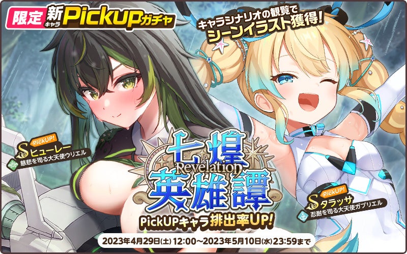 限定新キャラが追加されたPickUPガチャ「七煌英雄譚」が開催中です!