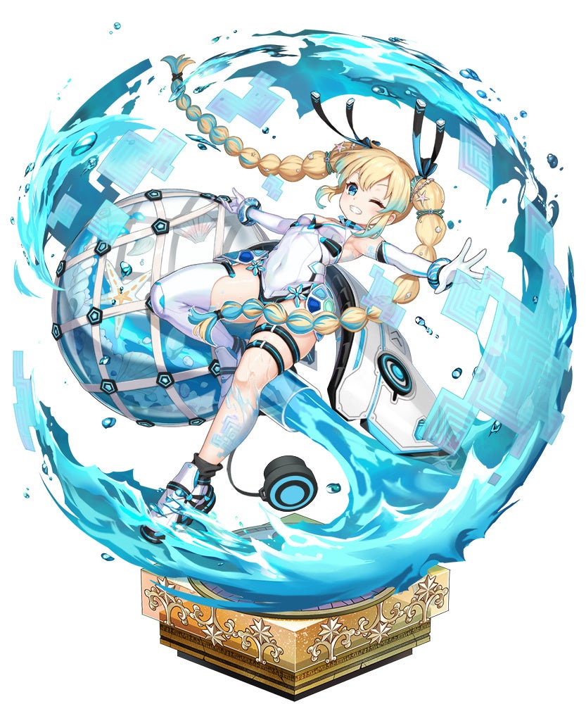 範囲内の敵全ての移動力を0にして水属性耐性を100%・他の属性耐性を25%下げ(以上効果2ターン)、オートカウンターの威力を上げて被ダメージを60%軽減して1~2マスのなかまへのダメージをみがわりする(以上効果1ターン)。クールターン数:2 ※スキル最大強化時の効果
