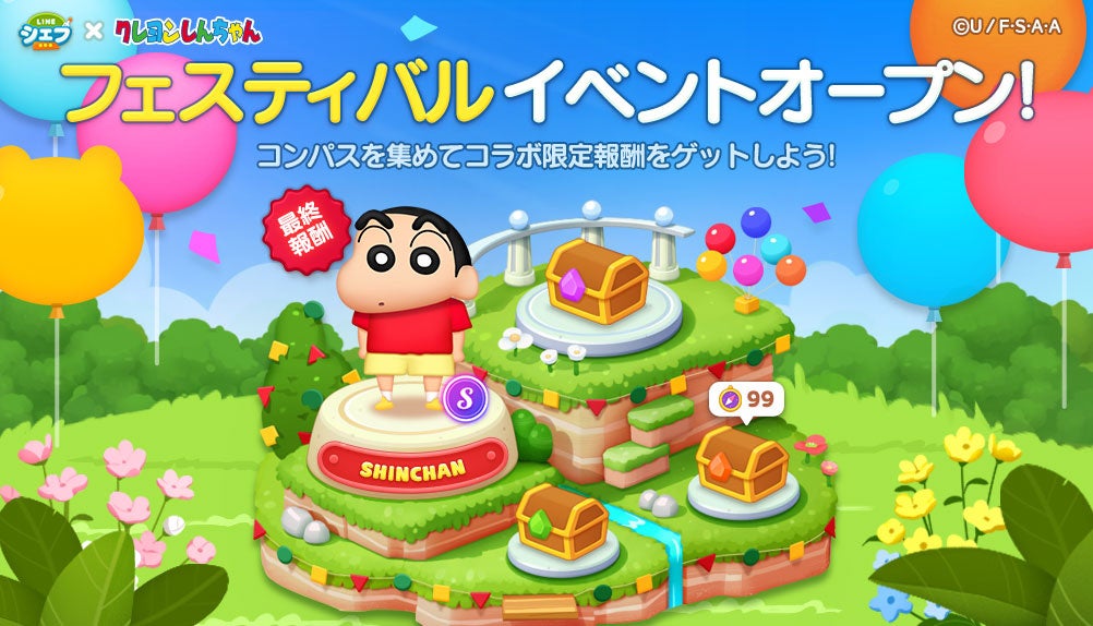本日より新イベントとして「フェスティバルイベント」を開催します。通常ステージやボーナスステージをクリアして「コンパス」を集めることで、コラボバディの「しんちゃん」や「パジャマしんちゃん」を獲得することができます。