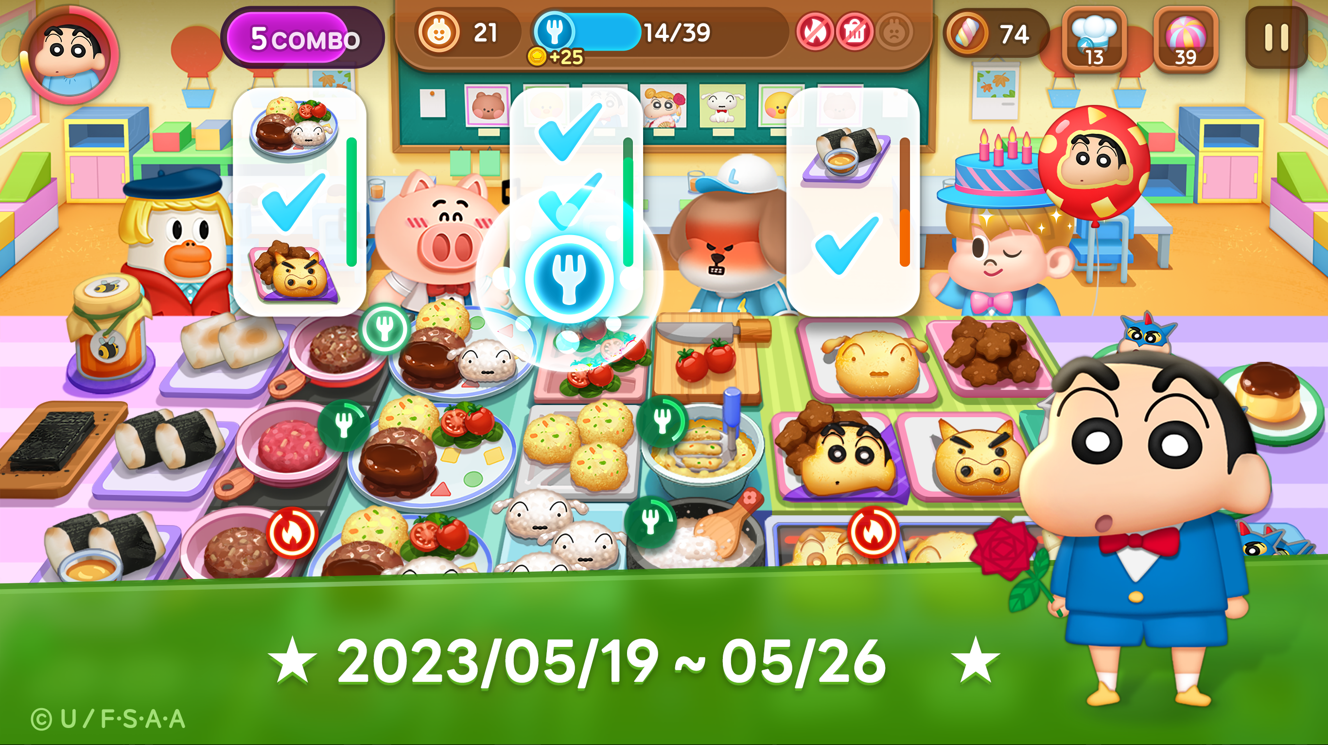 LINE 株式会社は、当社が展開するクッキングゲーム「LINE シェフ」(iPhone・Android 対応/無料)がサービス開始から4周年を迎えました。さらに、本日より『クレヨンしんちゃん』とのコラボレーション第2弾を開始しました。