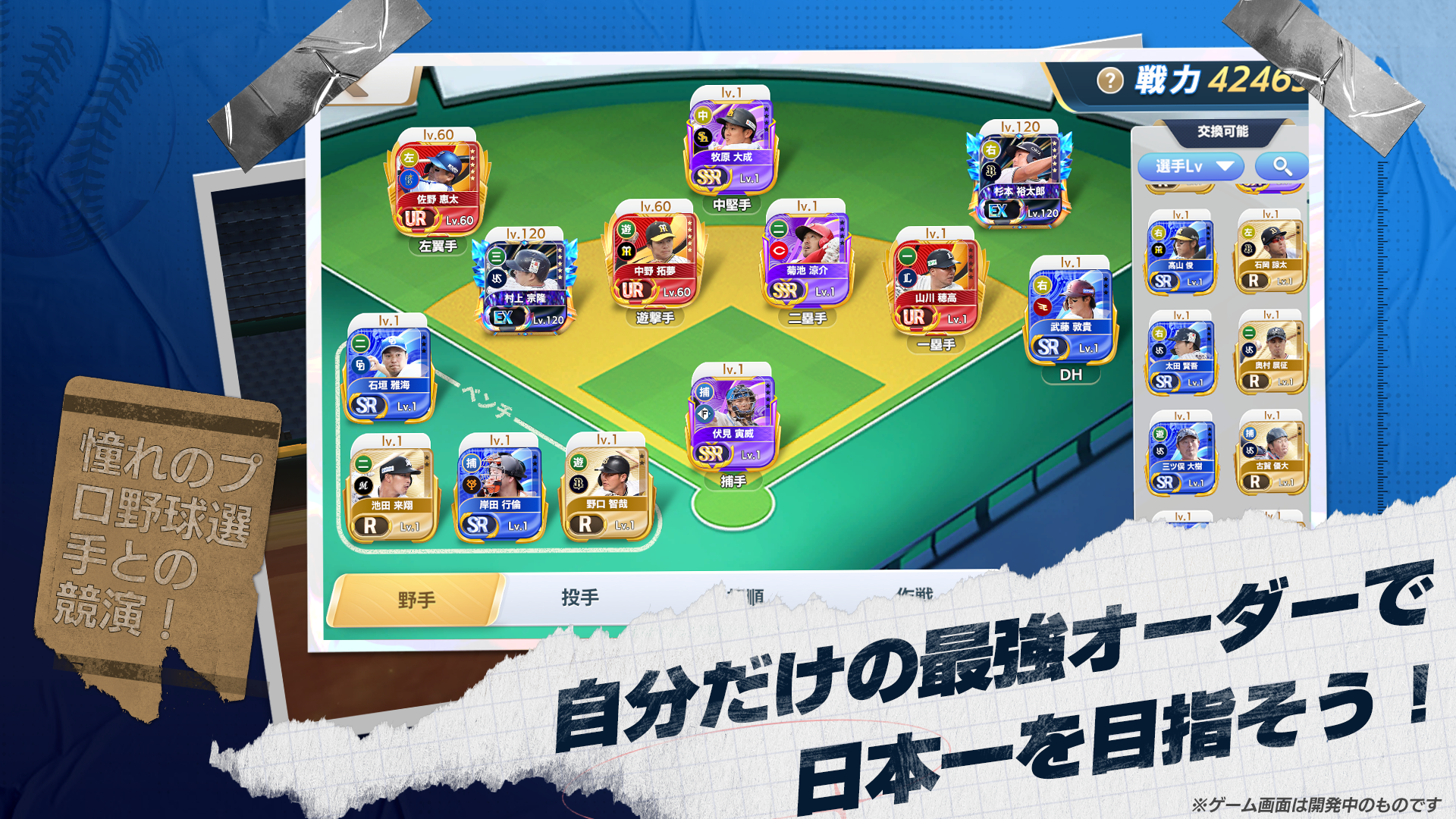 「憧れのプロ野球選手になれる」をコンセプトに開発を行い、ユーザーはオリジナル選手を作成し、実名実写で登場する現役プロ野球選手達と共にプレイすることが可能です。