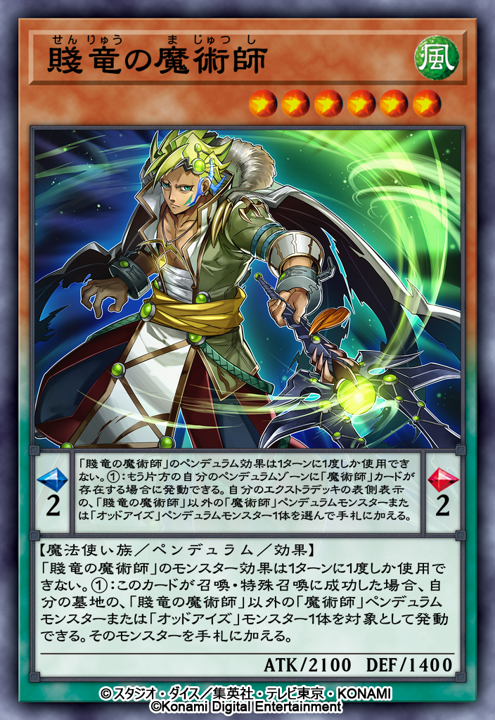 「賤竜の魔術師」のペンデュラム効果は1ターンに1度しか使用できない。①:もう片方の自分のペンデュラムゾーンに「魔術師」カードが存在する場合に発動できる。自分のエクストラデッキの表側表示の、「賤竜の魔術師」以外の「魔術師」ペンデュラムモンスターまたは「オッドアイズ」ペンデュラムモンスター1体を選んで手札に加える。