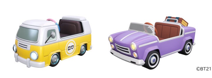 このたびのアップデートで、『BT21』のKOYA、 RJ、 SHOOKY、 MANG、 CHIMMY、 TATA、 COOKYのキャラクターがゲーム内のアイテムショップに登場するほか、エモートや絵文字、カートボディに貼り付けられるステッカーなど、各キャラクターのアイテムもショップにてご購入いただけます。