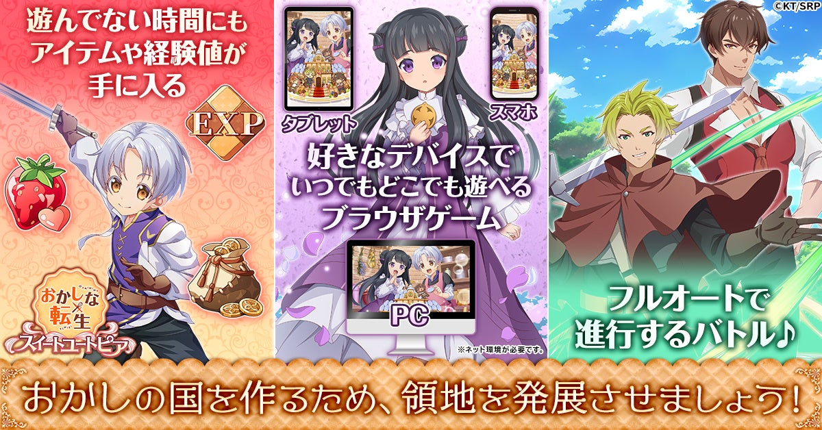 プレイヤーは、主人公・ペイストリー(CV:村瀬歩)として、お菓子で笑顔と幸せが溢れる領地作りを目指します。