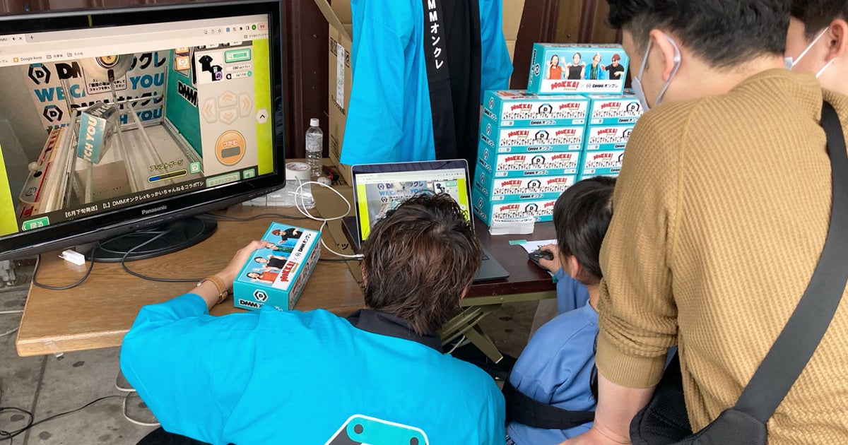来場者の方は、「もっかいちゃんねる」のメンバーにアドバイスをもらいながら「DMMオンクレ」をプレイ。10手以内で景品を獲得した方には、「DMMオンクレ×もっかいちゃんねる コラボデザイン箱ティッシュ」をプレゼント。10手以上だった方にも、「DMMオンクレステッカー」を進呈しました。