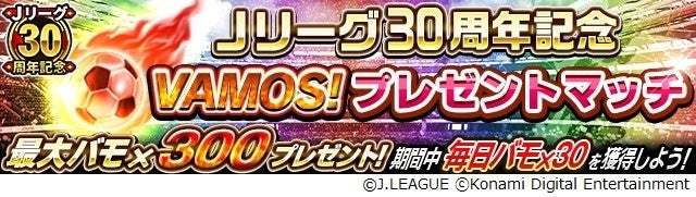 この他、毎日30バモが獲得できる「Jリーグ30周年記念VAMOS!プレゼントマッチ」や、期間中ログインするだけで「お気に入りクラブG85以上ガチャ券」などが獲得できる「Jリーグ30周年記念!スペシャルログインボーナス」などのゲーム内キャンペーンも実施しています。