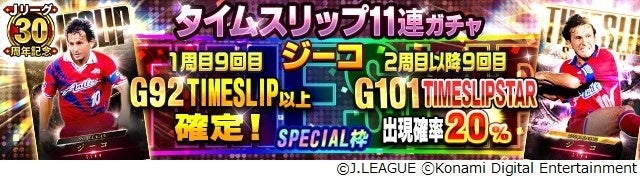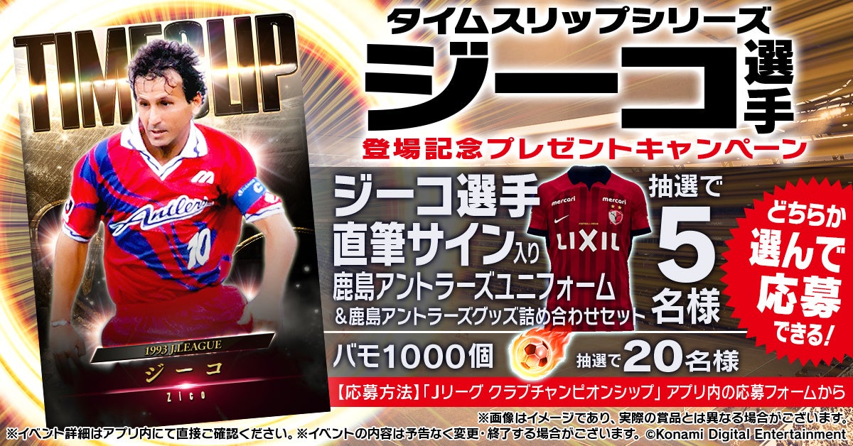 『Jクラ』では、Jリーグ開幕初年度の1993年当時に大活躍を魅せたジーコ選手が、タイムスリップカードシリーズとして当時の能力や姿で登場。