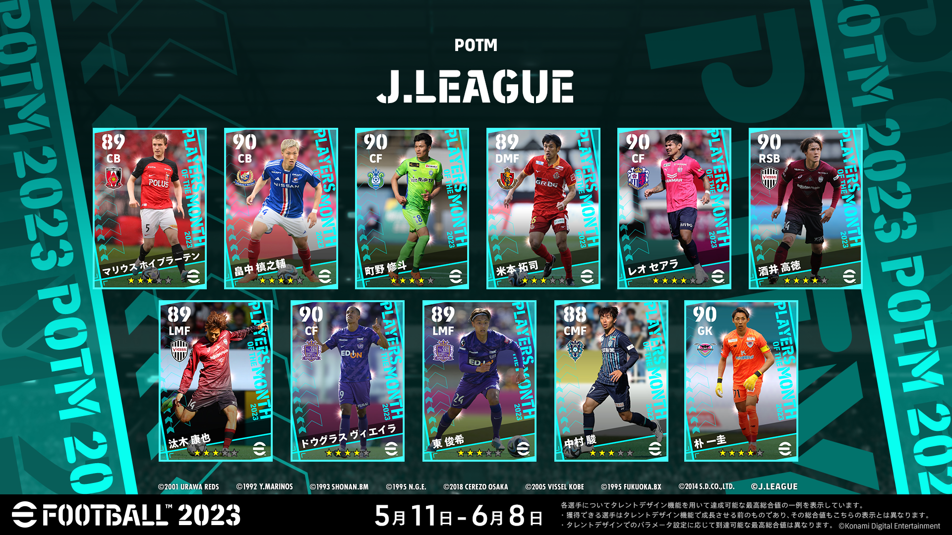 またLeague Selectionには「2・3月度KONAMI月間MVP」、「2・3月度KONAMI月間ベストゴール」を受賞した選手が登場します!