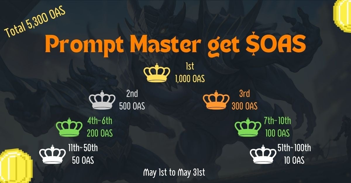 5月末までの対戦結果ランキング100位までのユーザーに、総額5,300 OASのプライズを用意しました。