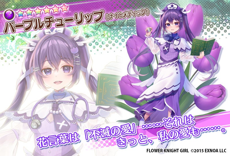 イベントに登場する「パープルチューリップ(ナイトメディック)」「イエローチューリップ(ナイトメディック)」「レッドチューリップ(ナイトメディック)」がプレミアムガチャに登場します!