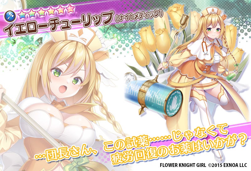「パープルチューリップ(ナイトメディック)」「レッドチューリップ(ナイトメディック)」「ホワイトチューリップ(ナイトメディック)」のキャラクエストがボイス付きで追加!