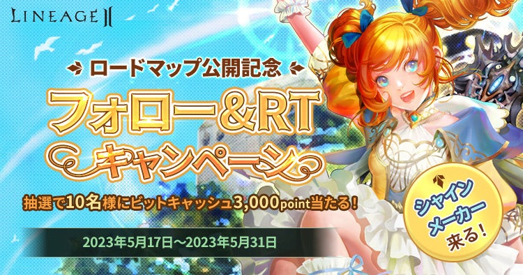 ライブサービスの「UPDATE ROADMAP」公開を記念して、リネージュ2公式Twitter( https://twitter.com/lineage2_FS )にて、抽選で10名様にBitCash3,000円分が当たるフォロー&リツイートキャンペーンを開催します。