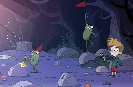 『Lost in Play』は考え抜かれたパズルとカラフルなキャラクターが織りなす、子どもの頃の想像力を刺激する旅です。気持ち高ぶる壮大な冒険で兄と妹の2人組を操作して、家への道を探しましょう。現実とファンタジーの狭間で、兄妹は角の生えた獣のいる魔法の森を探検し、ゴブリンの村で反乱を起こし、カエルのチームが石から剣を引き抜くのを手伝います。