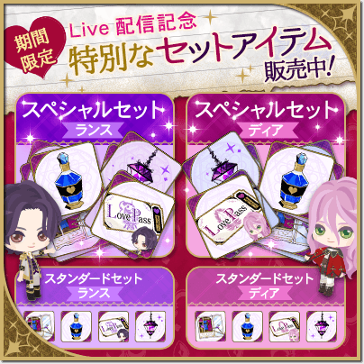 生配信を記念して、アプリでは特別なセットアイテムの販売が決定しました!通常よりもお得なセットとなっておりますので、この機会にぜひご利用ください。