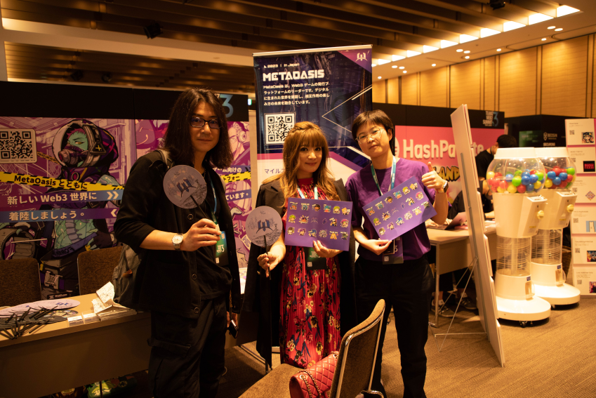 これは、私たちが初めて日本に招待されたイベントでもあり、会場には素晴らしい熱量がありました。私たちの boothに、非常に多くのWeb3 の日本のメンバーが来てくれました。彼らは MetaOasis を長年フォローし、また PlayerOne PFP NFTを持ってくださる方もいました。