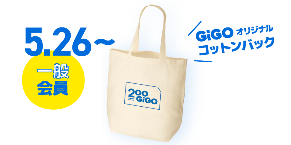 1.『GiGOアプリ』TOP画面を表示してスタッフに提示すると、GiGOオリジナルコットンバックがその場でもらえます。