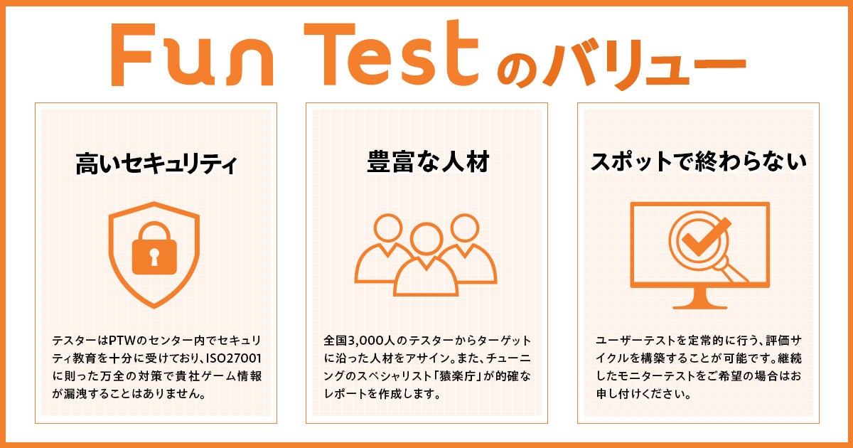 だからこそ、いかに品質の高いゲームを提供するかが今後の課題となっています。ターゲット層の満足度を最大限に引き上げるため、私たちの「Fun Test」による的確な分析でお手伝いいたします。