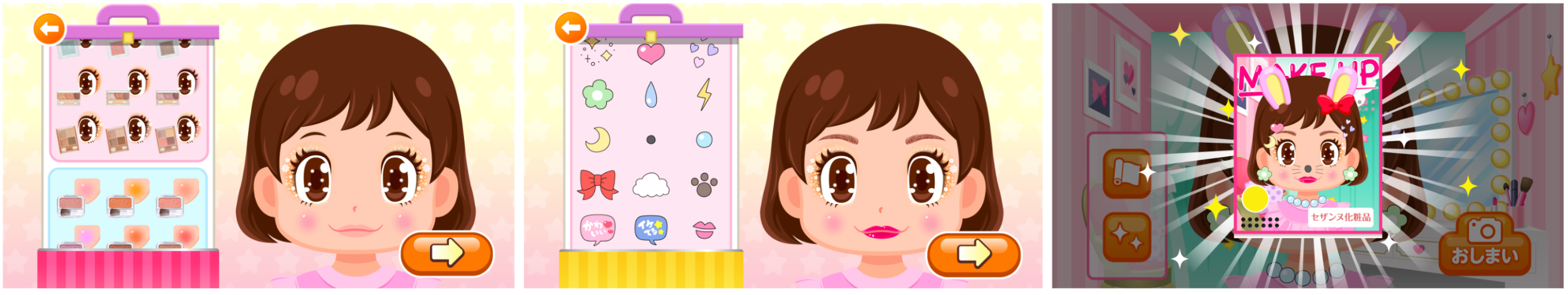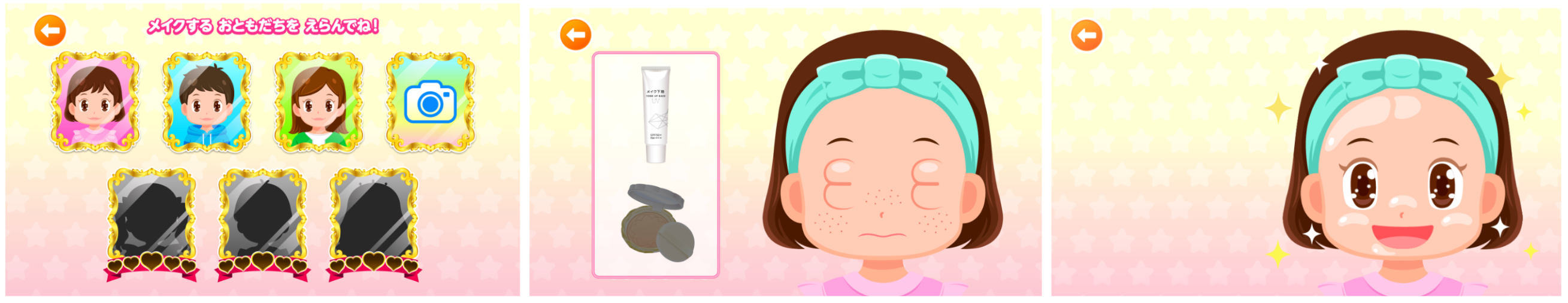 「たのしい!メイクたいけん」は、様々なメイクアイテムを使い、メイクアップを擬似体験できるゲームです。