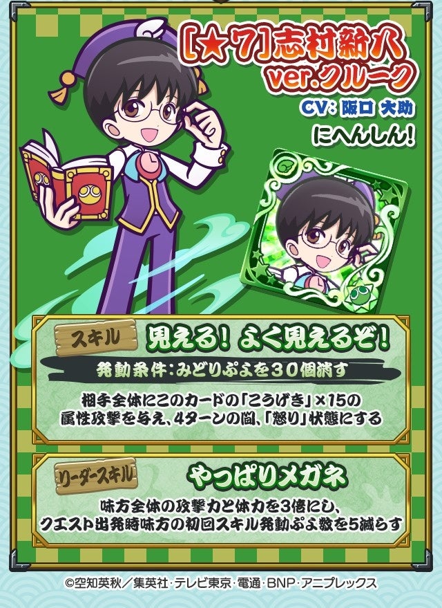 「[★6]坂田銀時 ver.シェゾ」「[★6]志村新八 ver.クルーク」「[★6]神楽 ver.アルル」は、同日から開催中のコラボ収集イベント「新春おとしだま収集祭り」で、★7までへんしんするための素材を獲得可能です!