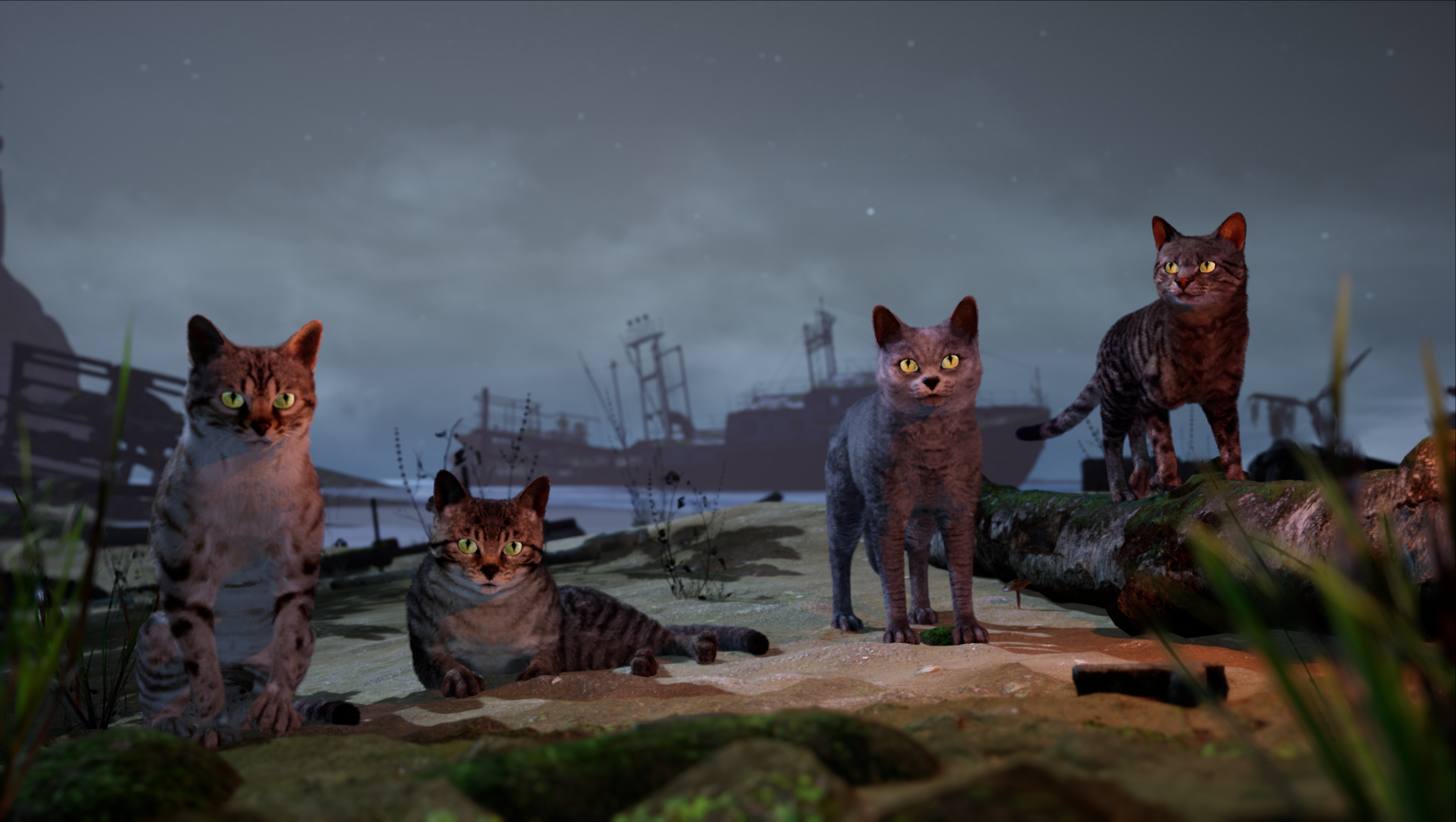ゲーム内での時間経過によって時間帯(朝昼/夕方/夜)が徐々に変化していく島の様子、動物や虫の目線で体験