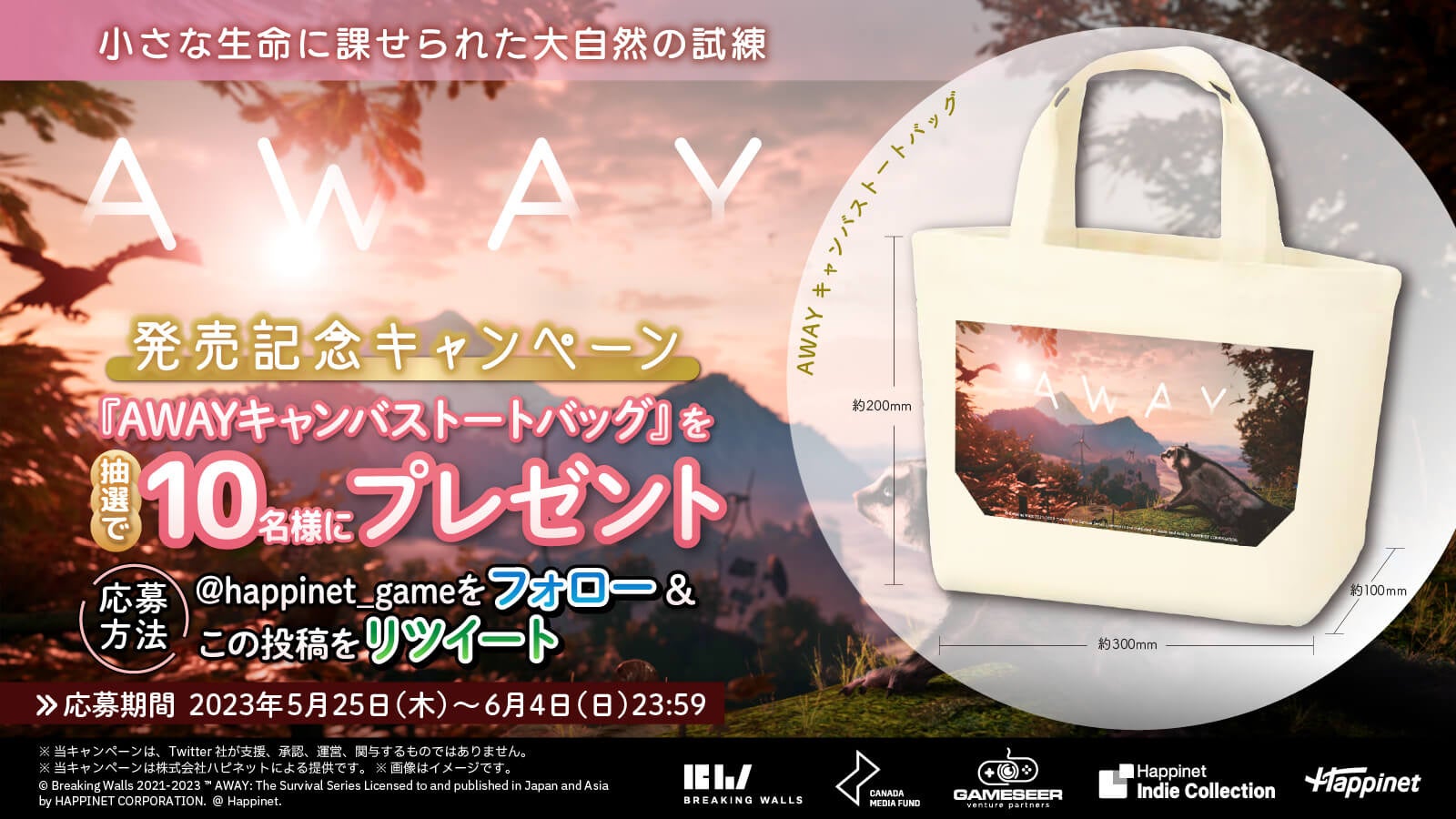 「AWAY」の発売を記念し、本日5月25日(木)よりハピネットゲームズ(Happinet GAMES)公式Twitterにてフォロー&リツイートキャンペーンを開始しました。