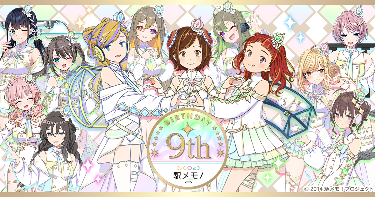 「駅メモ!」は2014年6月26日にコロプラ版をリリース、同年11月28日にiOS/Android版をリリースし、今年で誕生9周年を迎えます。それを記念して「ステーションメモリーズ!」および「駅メモ! Our Rails(略称:アワメモ!)」(以下「駅メモ!」シリーズ)において、2023年6月1日(木)より「駅メモ!誕生9周年記念キャンペーン」を開催します。