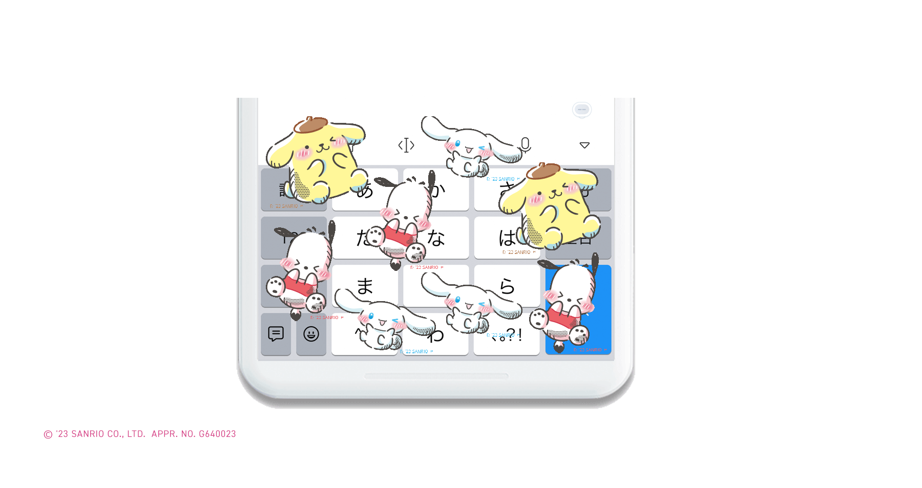 ユーザーが文字を入力し、変換候補より特定のキーワードを選択することで画像や動画がキーボード上に現れる機能です。当コラボでは特定のキーワード「サンリオ」「キティ」「マイメロ」などによってエフェクトが再生されます。コラボならではのエフェクトをお楽しみください。