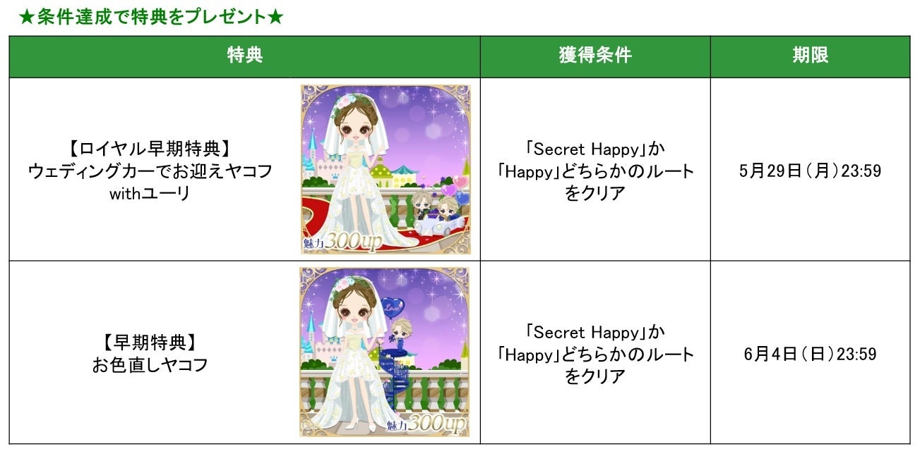 株式会社ボルテージ(本社:東京都渋谷区 代表取締役:津谷 祐司)は、提供中のボル恋タイトル「王子様のプロポーズ Ⅱ」及び「王子様のプロポーズ Eternal Kiss」にて、ヤコフ・チェルネンコの続々編となる“ロイヤルウェディング編”を5月26日(金)より配信開始したことをお知らせいたします。