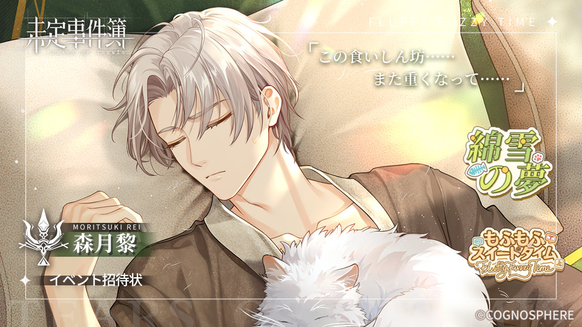 期間中、「もふもふスイートタイム」シリーズの招待状、水無瀬夏彦「安らかなひと時」、森月黎「綿雪の夢」は、「もふもふスイートタイム」のイベント画面からご購入できます。イベント招待状を購入すると、おまけとしてステラウェハ×300が贈呈されます。