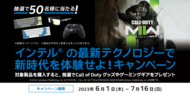 応募方法: 期間中に対象のインテル製品をご購入いただくと、シリアルカードが添付されます。シリアルカードに記載のシリアルコードでキャンペーン・サイトよりご応募いただけます。