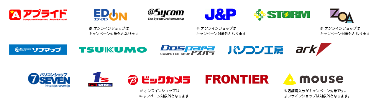 ※店舗によっては、対象製品を販売していない場合がありますので、購入前に必ず各店舗にご確認ください。