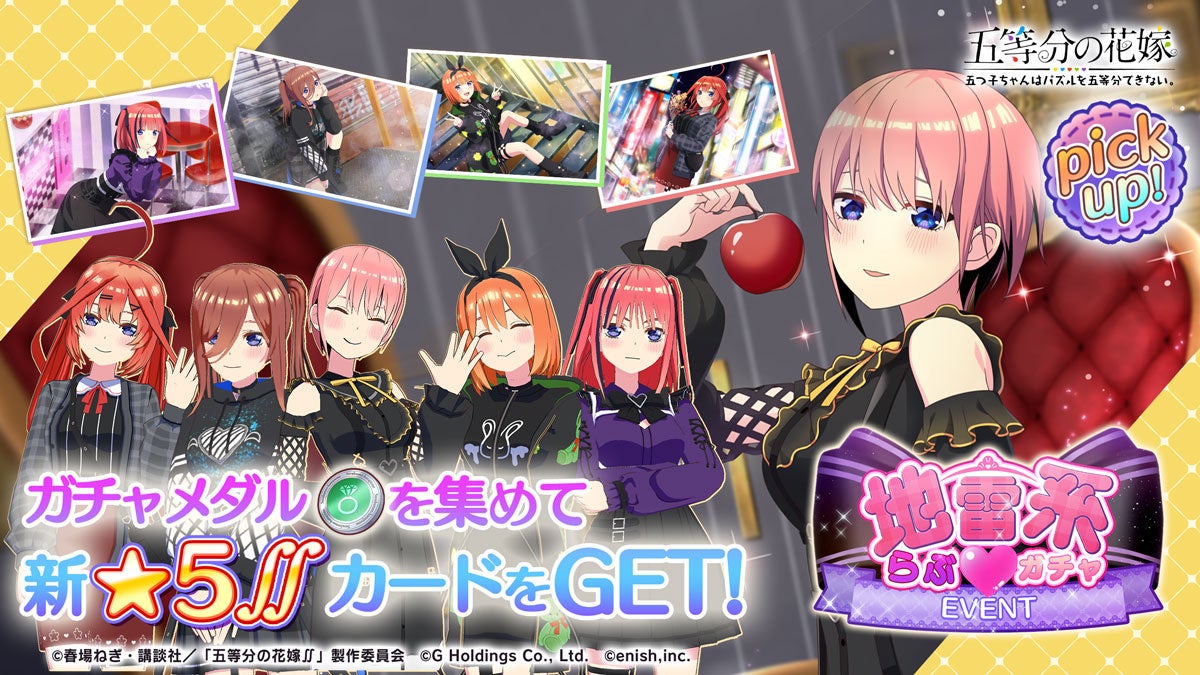 また、イベントに先駆け5月30日(火)より、五つ子の地雷系姿を描き下ろしたイラストのカードが手に入る新しいガチャを開始いたしました。